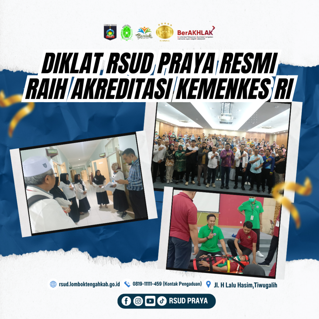 Instalasi Diklat RSUD Praya, institusi yang bergerak di bidang pendidikan dan pelatihan (diklat), secara resmi mengumumkan keberhasilannya meraih Sertifikat Akreditasi dari Kementerian Kesehatan Republik Indonesia (Kemenkes RI). Pencapaian ini menegaskan komitmen RSUD Praya dalam menyelenggarakan pelatihan kesehatan yang memenuhi standar mutu nasional.